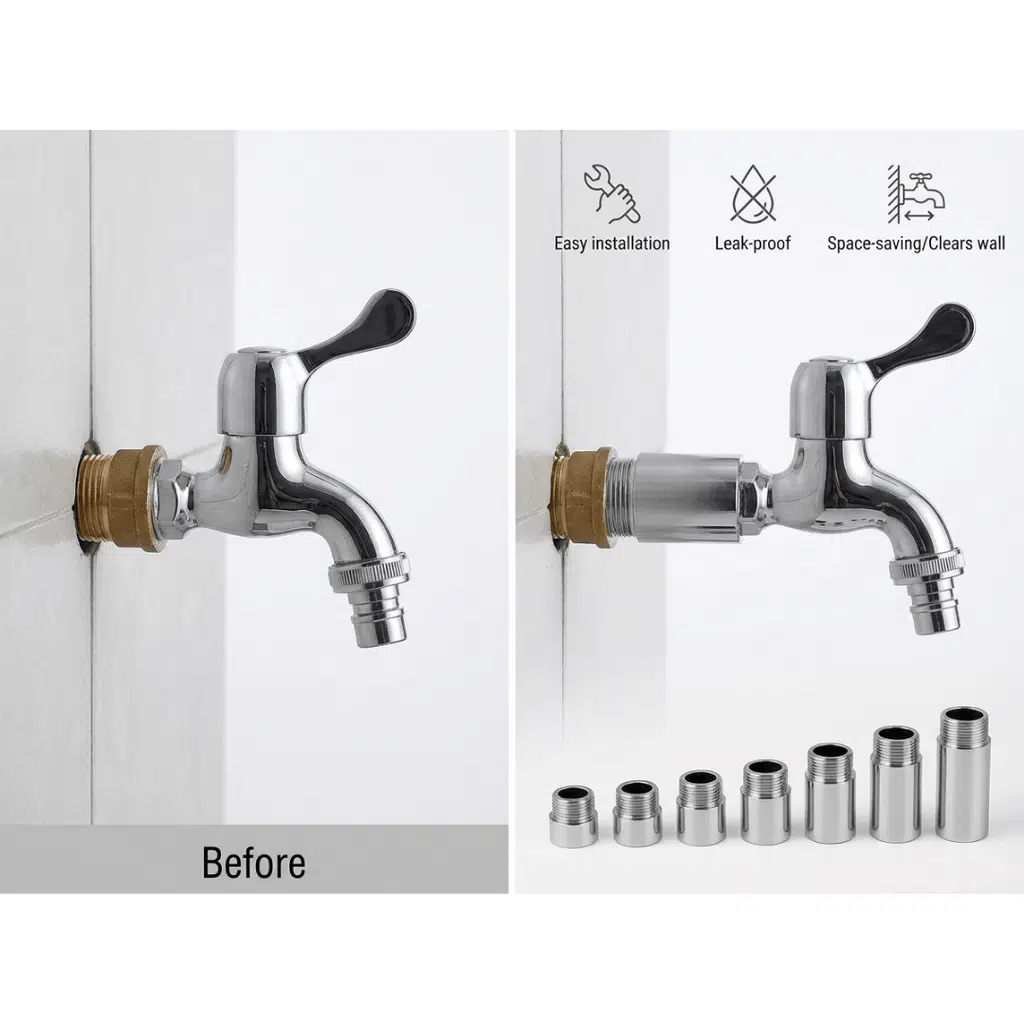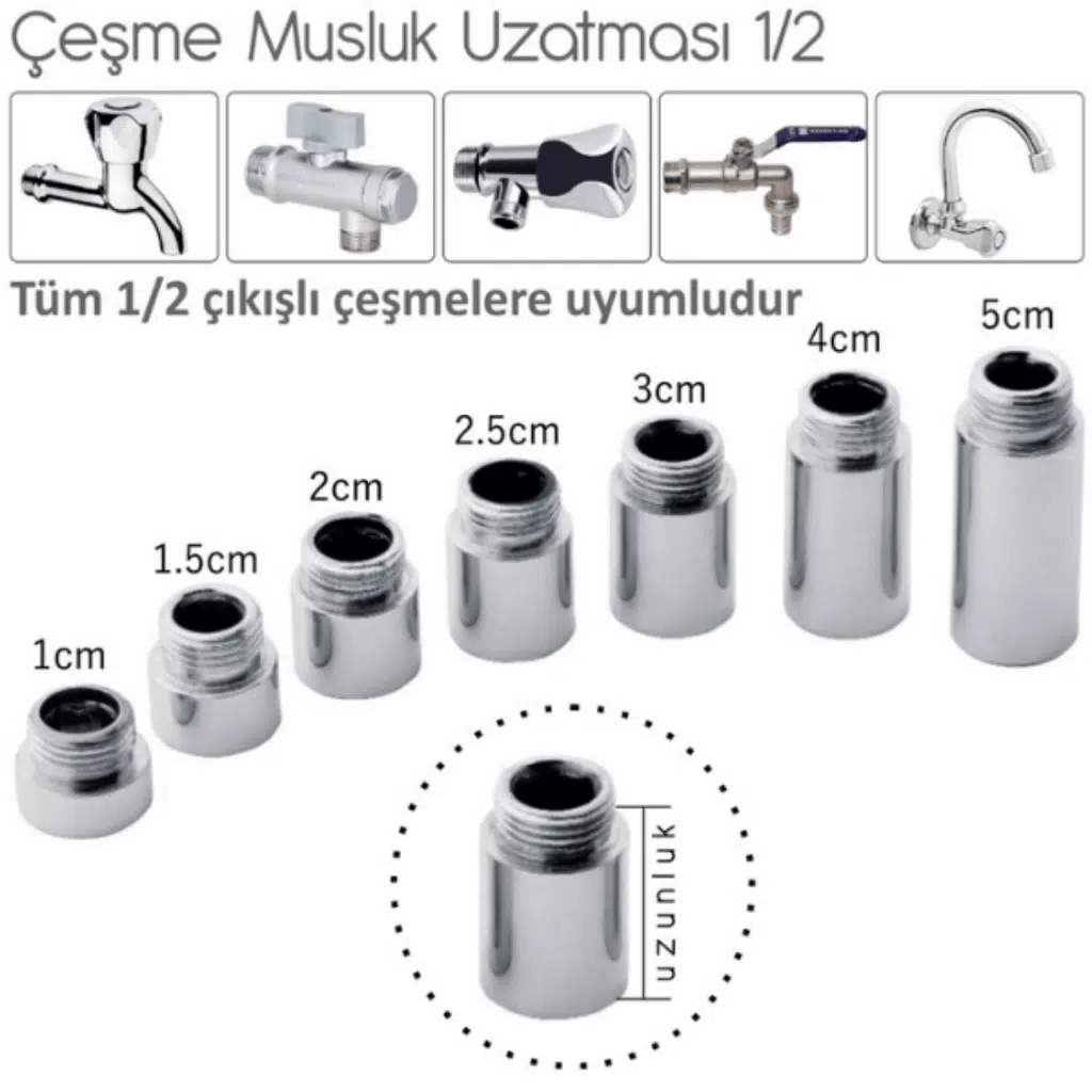 Kısa kalan musluk/tesisat çıkışlarını pratik ve güvenli şekilde uzatmak için tasarlanmış dayanıklı bir bağlantı parçasıdır. Pirinç gövde üzerine uygulanan parlak krom kaplama; hem estetik görünüm sağlar hem de günlük kullanımdaki neme karşı ekstra koruma sunar. Mutfak, banyo ve benzeri alanlarda duvara yakın kalan bağlantıları daha kullanışlı hale getirir ve montajı kolaylaştırır.
